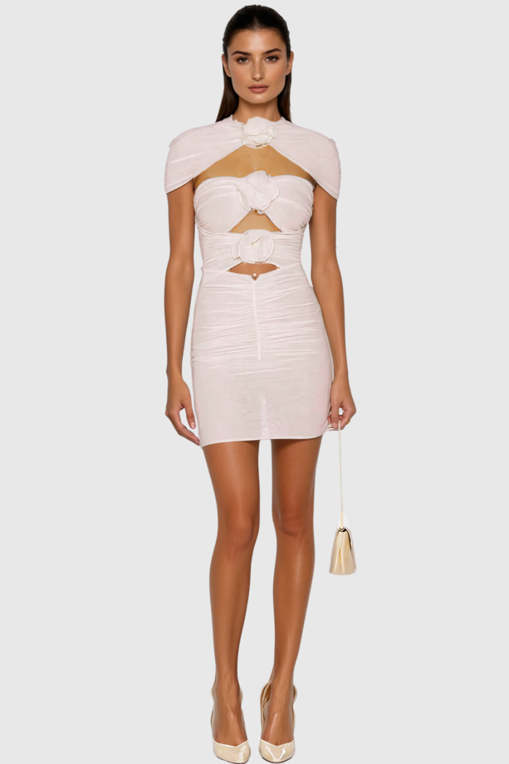 Carmelo Flower Ruch Cutout Mini Dress