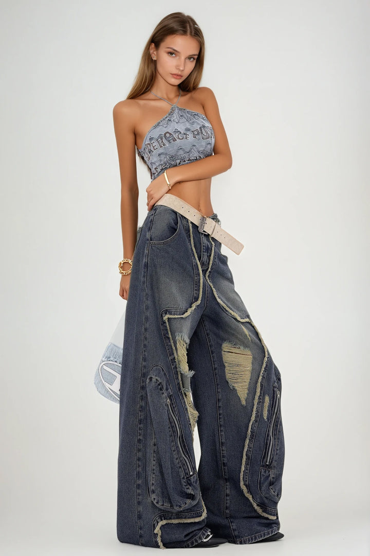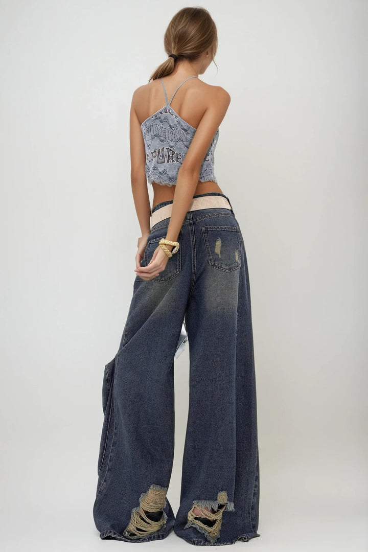 Dessislava Fringe Ripped Wide Leg Jeans combine contemporary edge with timeless silhouette. The strategic ripped detailing and fringe accents deliver a curated, fashion-forward aesthetic, while the wide-leg cut provides comfortable movement and flattering proportions. Crafted for those who appreciate intentional design, these jeans transition effortlessly from casual outings to styled occasions. The distressed elements add character and depth, making them a versatile foundation piece for building distinctive looks.