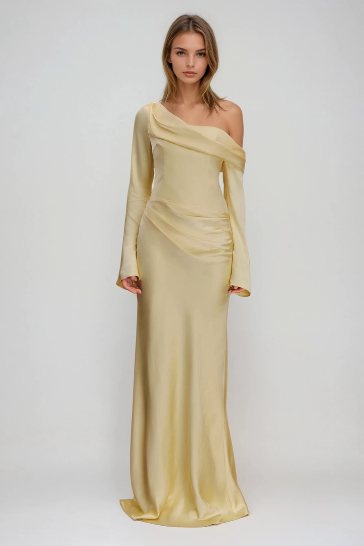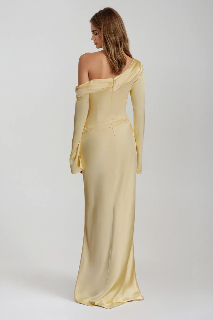 Divina One Shoulder Satin Maxi Dress In Butter Yellow