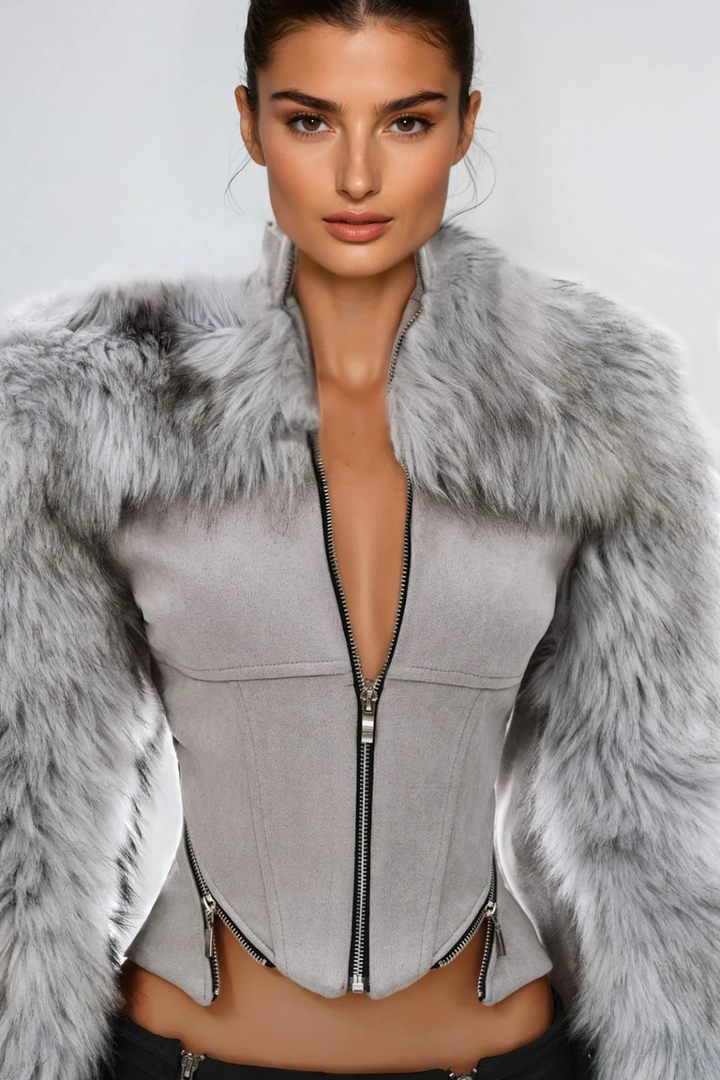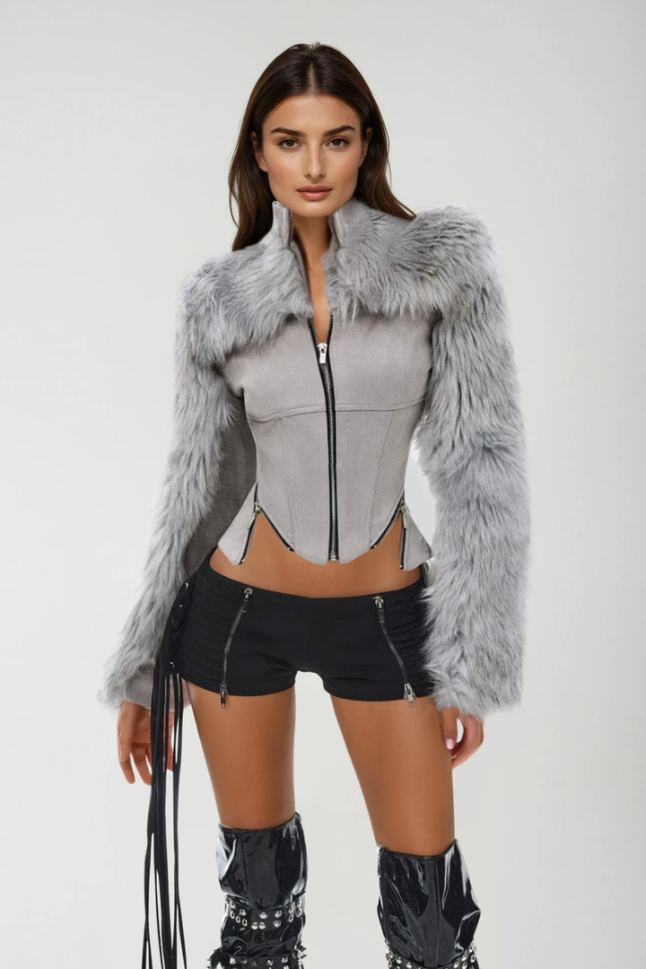 Donghyun Deconstruct Faux Fur Jacket This architectural piece reimagines faux fur through intentional deconstruction. Asymmetrical paneling and strategic cutouts create visual movement while maintaining the luxurious warmth of premium synthetic fur. The deconstructed silhouette offers a contemporary edge—perfect for those who appreciate avant-garde design without compromising on comfort. Layer it over minimalist basics or pair with tailored pieces to let the jacket's innovative construction take center stage. A statement outerwear essential for the discerning dresser.
