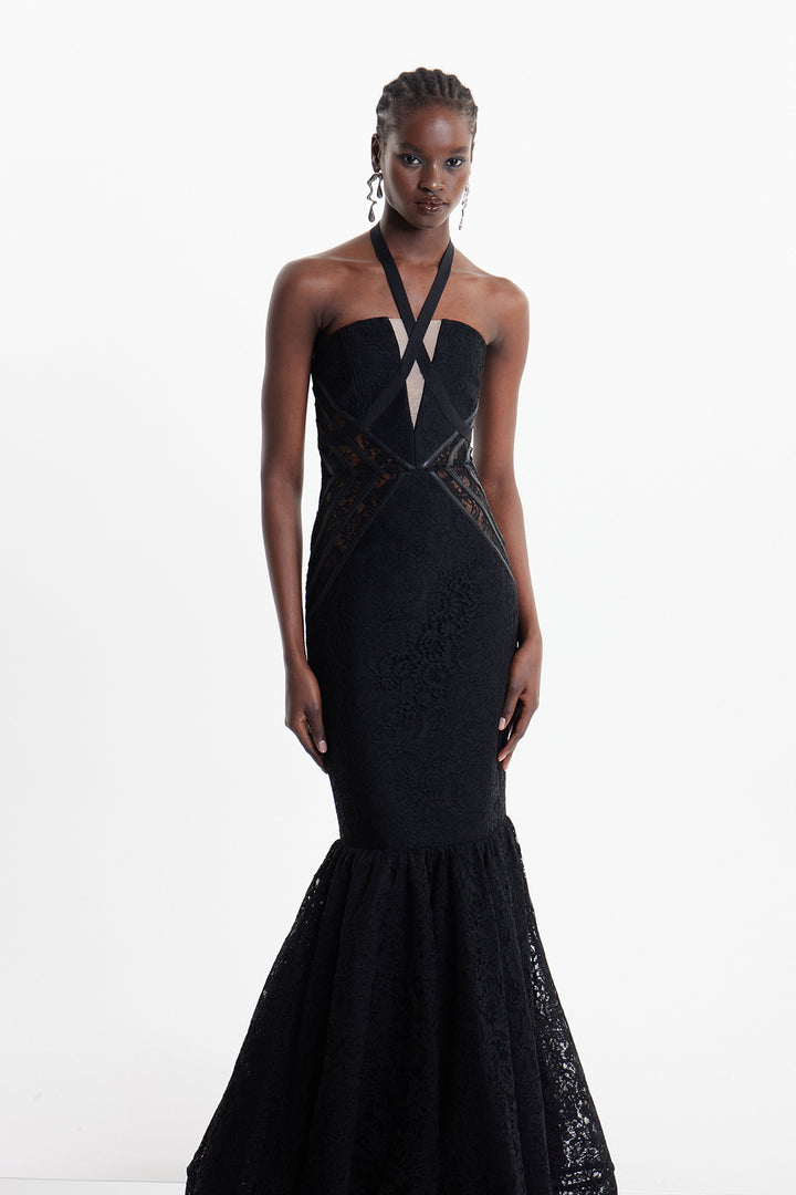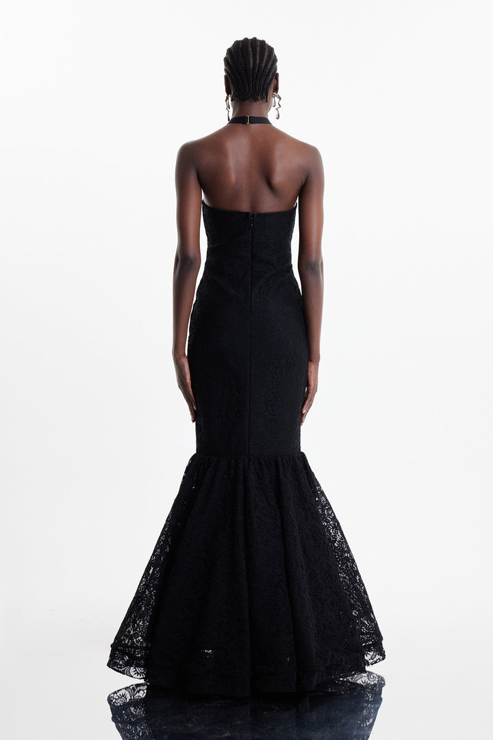 Elea Lace Mermaid Maxi Dress Crafted with intricate lace detailing, this mermaid silhouette maxi dress combines timeless elegance with contemporary design. The fitted bodice flows into a dramatic flared hem, creating a flattering hourglass shape that commands attention. Perfect for formal events, galas, or upscale celebrations, the delicate lace construction offers refined sophistication while the maxi length provides graceful movement. An expert choice for those seeking a statement piece that balances classic femininity with modern allure.